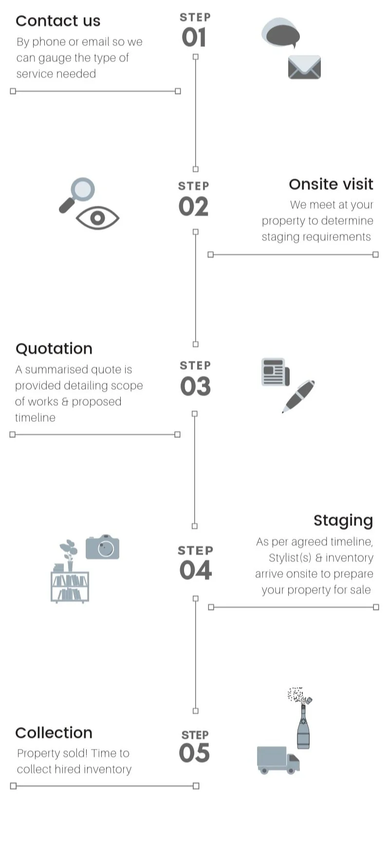In addition to communicating with you, we collaborate with your agent to determine target markets & prospective buyer motivations. With this in mind, we style your home to its greatest potential to maximise sale price.
